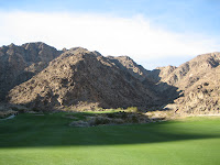 Today was our last day in Palm Desert. So to take advantage of the sunny weather - Scott and I played another round of golf. Through Stand By Golf - we were able to get a tee time at La Quinta on the Mountain Course. First we stopped at Lumpy's Golf Store - I had to buy some more balls since I lost all of mine yesterday. So, with a brand new dozen of balls, Scott's parents dropped us off at the course. We were paired with two women - Heidi (from Germany) and Karin (from Massachusettes) - they are sisters. The first hole was brutally difficult!! The second hole not much better!! In fact, I had a terrible game! The greens were all elevated and very hard to keep the ball on! However, the course is just absolutely fantastic!! As it's name implies, the course is built around the mountains - in fact, one of my tee shots ended up half way up the mountainside!! Again, I lost alot of balls - 6 of my new balls!!